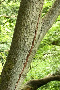 A crack is a deep split through the bark, extending into the wood of the tree. Cracks are extremely dangerous because they indicate that the tree is already failing.