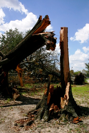 Trees with root problems may blow over in wind storms. They may even fall without warning in summer when burdened with the weight of the trees leaves. There are many kinds of root problems to consider, for example, severing or paving-over roots, raising or lowering the soil grade near the tree; parking or driving vehicles over the roots; or extensive root decay.